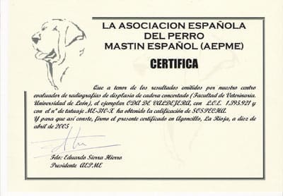 Certificado de evaluación de displasia de cadera: B (Sospecha)